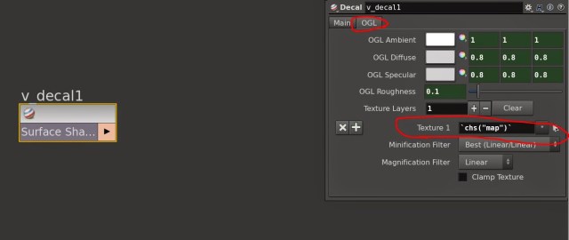 Now go to the SHOP network and create a decal node. This node is used to apply texture on a model.